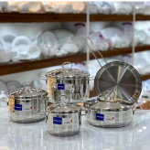 سرویس قابلمه استیل کرکماز مدل آسترا A 1900 از 9 پارچه مختلف تشکیل شده است که شامل 4 عدد قابلمه دربدار و یک عدد تابه میباشد. قابلمهها دارای ظرفیتهای 2، 3.5، 3.8 و 6.3 لیتر و به ترتیب ابعاد 24x8 ،20x12 ،16x10 و 24x14 سانتیمتری دارند. تنها تابه این سرویس ظرفیت 2.7 لیتری و ابعاد 24x6 سانتیمتری دارد.