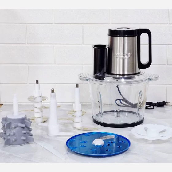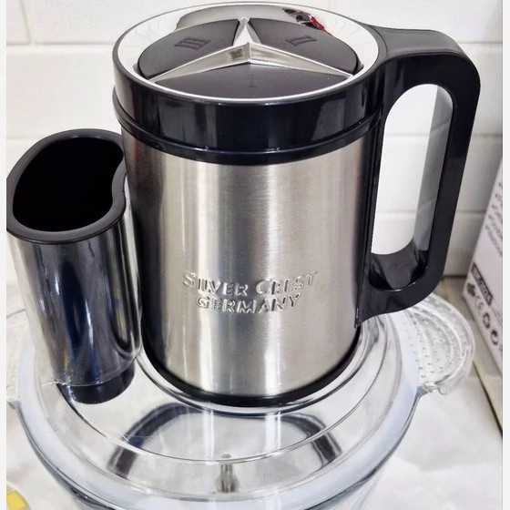 برند سیلور کرست ظرفیت 3/8 لیتر جنس کاسه پیرکس تیغه 6 تیغه تیتانیوم طلایی و 4 پره تیغه تیتانیوم، صفحه برش دو طرفه ، رنده ، اسلایسر سیر پاک کن سلیکونی همزن دارد مخصوص هم زدن ، میکس کردن، تهیه خمیر کیک ،مخلوط کردن مواد و ... توان 3000 وات توضیحات صفحه برش صفحه برش مخصوص کاسه پیرکس می باشد که ایم صفحه از یک سمت مناسب رنده کردن و با برعکس کردن صفحه حالت برش اسلایسر مخصوص برش ورقه سیب زمینی و هویچ ، خیار و ...می باشد که در کمترین زمان ممکن می توان مواد را آماده کند خردکن و غذاساز چند کاره سیلور کرست یکی از جدیدترین محصولات شرکت مایر می باشد که با قابلیت و کارایی بالانتوانسته یکی از بهترین و پرفروش ترین خردکن های موجود در بازار باشد، این خردکن با ظرفیت 3/8 لیتر و توان 3000 وات قابلیت خرد کردن ، رنده کردن ، مخلوط کردن و اسلایسر انواع مواد غذایی گوشت سیب زمینی ، سبزیجات ، میوه ها و غیر را دارد ، جدا از کارایی خردکن دارای صفحه رنده ، و برش ورقه ای (اسلایسر )می باشد ، همچنین دارای همزن پلاستیکی بزرگ جهت تهیه انواع سس ، و مخلوط کردن انواع مواد می باشد ، از ویژگی خردکن مایر می توان ، به قاشق جدا کننده سفید و زرد تخم مرغ ، سیر پاکن ، صفحه دو طرفه مخصوص رنده و برش ورقه ، شش تیغه استیل تیتانیوم طلایی و همچنین یک کاسه استیل یدک اشاره کرد ----------------------- می خواستیم بگیم که سفارش شما با نهایت دقت و ظرافت قبل از ارسال چک و تست میکنیم و با نهایت حوصله بسته بندی میکنیم لطفا از روند باز کردن و راه اندازی محصول بصورت پیوسته فیلم بگیرید . خیلی مهمه که همه ی جای بسته بندی و محصول مورد نظر در فیلم مشخص باشد و و بصورت پیوسته باشد و قطعه قطعه نباشد چرا فیلمبرداری پیوسته مهمه ؟ اگر یوقت برای محصول مورد نظر مشکلی پیش اومده باشه با استناد به اون فیلم بتونیم هر مشکلی که پیش اومده باشه رو حل کنیم و مشکل رو رفع کنیم . ...