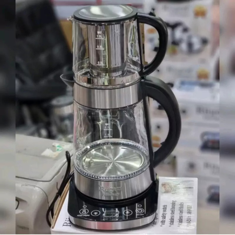 چای ساز روگن RU-1510 ساخت برند روگن که یک برند معروف آلمانی است و مجهز به فناوری ها و قابلیت های منحصر به فردی می باشد. به عنوان مثال یکی از بهترین و مهم ترین ویژگی های این محصول قابلیت استفاده از یک کتری می باشد. یعنی شما کاربران قادر خواهید بود از کتری این چای ساز به صورت جداگانه استفاده کنید. همچنین ظرفیت کتری برابر با 1.7 لیتر و قوری 1 لیتر می باشد. اجزای این محصول فوق العاده شامل کتری و قوری به همراه صفحه نمایش زیرین آن با صفحه نمایش لمسی و نمایشگر و کنترل دما می باشد که از طریق آن و فعال سازی سنسور نگه داشتن گرم می تواند چای را گرم نگه دارد. جدا از این کیس های منحصربفرد، از فناوری دیگری نیز استفاده می کند و آن خاموش شدن خودکار در هنگام خالی بودن کتری است. به این ترتیب هر زمان که کتری خالی باشد دستگاه به صورت خودکار یا به همین صورت خاموش می شود و به این ترتیب از بروز مشکل جلوگیری می شود. در ضمن این محصول بسیار زیبا و کاربردی که برای هر مکانی مناسب است 2200 وات تناژ مصرفی را پشتیبانی می کند. از نظر طراحی بسیار منحصر به فرد و فوق العاده است و به گونه ای ساخته شده است که چشم بیننده را به خود جلب می کند. بدنه قوری از شیشه و قوری از فولاد ضد زنگ ساخته شده است. در آخر باید بگوییم که علاوه بر تهیه چای، می توانید برای تهیه قهوه نیز از آن استفاده کنید و با آن قهوه ای بسیار خوشمزه درست کنید.