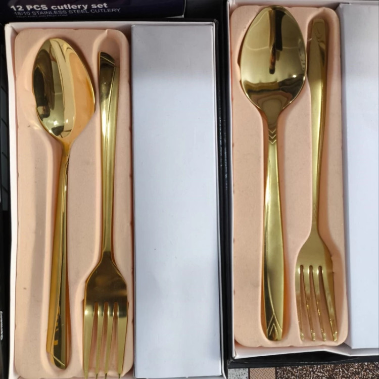 قاشق چنگال طلایی یونیک جعبه ای 6 عدد قاشق 6 عدد چنگال ضد زنگ آهنربا نگیر یک جنس فوق العاده باکیفیت و تضمینی