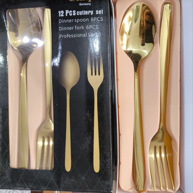 قاشق چنگال طلایی جعبه ای یونیک آلمان 12 عدد ضد زنگ
