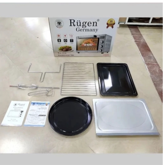آون توستر روگن مدل RU-2520 ⚜️توان: 2200 وات ⚜️ظرفیت: 50 لیتر ⚜️جنس بدنه: استیل ضد زنگ ⚜️جنس درب: شیشه پیرکسی ⚜️تعداد المنت:6 عدد ⚜️تعداد سینی: 2 عدد ⚜️فروش بصورت عمده و تکی ⚜️