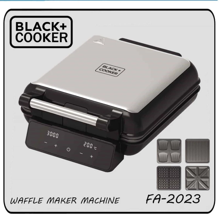 وافل ساز 4 کاره بلک کوکر مدل FA-2023 توان 750 وات 4 جفت سینی (وافل ساز – استیک – ساندوچ ساز – گریل) نمایشگر لمسی قابلیت تنظیم دما و زمان به صوزت دستی بدنه با روکشن استیل ضد زنگ قابلیت جداسازی صفحه ها با و شستشو