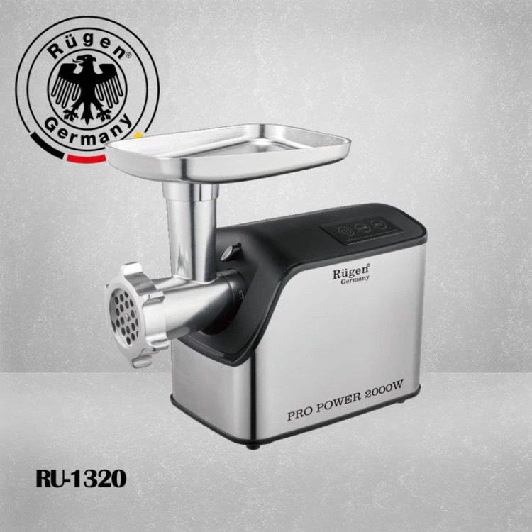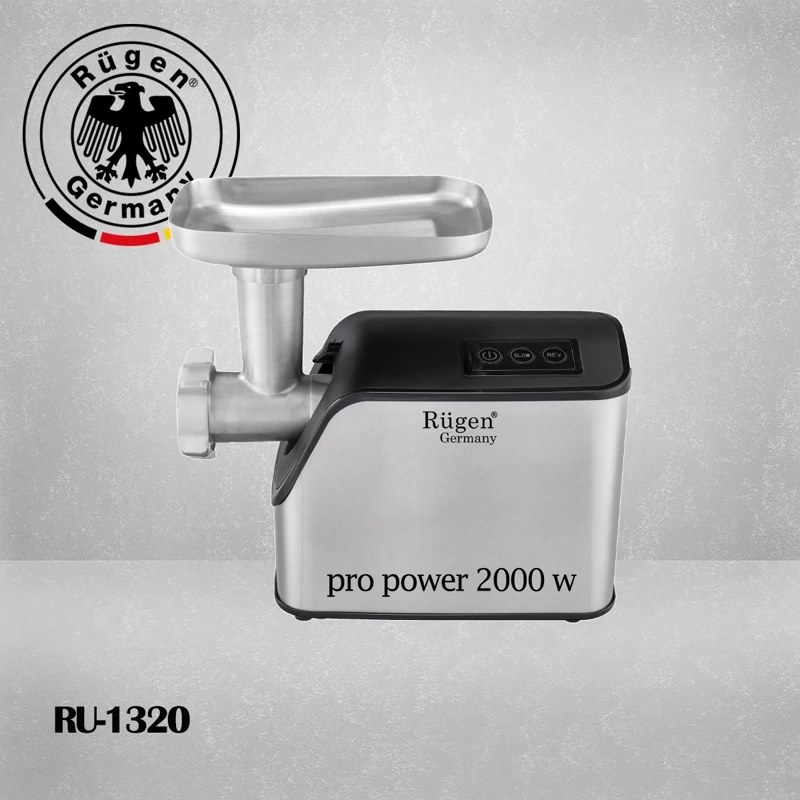 چرخ گوشت روگن مدل RU-1320 یکی دیگر از مدل های چرخ گوشت است که ساخت برند روگن می باشد. روگن یکی از تولیدکنندگان آلمانی لوازم آشپزخانه است که همواره محصولاتی با کیفیت و پرفروش تولید و وارد بازار می کند. اکنون این چرخ گوشت RU-1320 نیز دارای ویژگی های شگفت انگیزی است که کاربران بسیاری را به سمت خود جذب کرده است. برای مثال می توان به مصرف برق بالای 2000 وات آن اشاره کرد. بنابراین برای چرخکردن انواع گوشت بسیار مناسب است و از سرعت و دقت بالایی بهره می برد. همچنین قابلیت دو سرعته آن به شما این امکان را می دهد که سرعت چرخکردن گوشت را در دو حالت مختلف تنظیم کنید. علاوه بر این ممکن است گاهی هنگام چرخ کردن گوشت بین تیغه ها گیر کند که در این صورت می توانید با استفاده از سیستم چرخش معکوس تیغه های دستگاه را وارونه بچرخانید و گوشت گیر کرده را جدا کنید. علاوه بر این، این محصول دارای چندین قسمت اضافی نیز می باشد که هر کدام کارایی خاص خود را دارند. مثلاً می توان گفت سوسیس ساز برای تهیه سوسیس خانگی، بشقاب کوچک و بزرگ و معمولی برای چرخکردن گوشت در اندازه های مختلف و چرخ مارپیچ دارد. حال بهتر است به طراحی بسیار زیبا و شیک این چرخ گوشت روگن RU-1320 توجه کنید. روگن این محصول را با ترکیب رنگ های سفید و نقره ای به بازار عرضه کرده است و با این وجود از ظاهری چشم نواز برخوردار است و همچنین دارای چند دکمه برای تنظیم سرعت و روشن و خاموش شدن خود دستگاه نیز بر روی بدنه خود است.