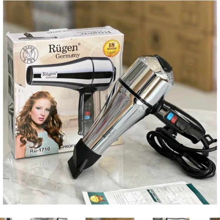 سشوار حرفه ای روگن مدل RU 1710 محصول برند RUGEN آلمان است. این وسیله بسیار سبک،حرفه ای و قدرتمند و مناسب برای استفاده سالنی و خانگی می باشد و همچنین برای افرادی که کمترین فضا را برای نگهداری دارند بهترین گزینه است. جنس بدنه سشوار روگن از استیل و پلاستیک با دوام و بسیار مقاوم ساخته شده و قسمت استیل آن دارای عایق حرارتی محکم و فوق العاده است. موتور این سشوار دارای توان بالای 3000 وات بوده و به دلیل سیم پیچی مسی که دارد دارای عمر طولانی می باشد.